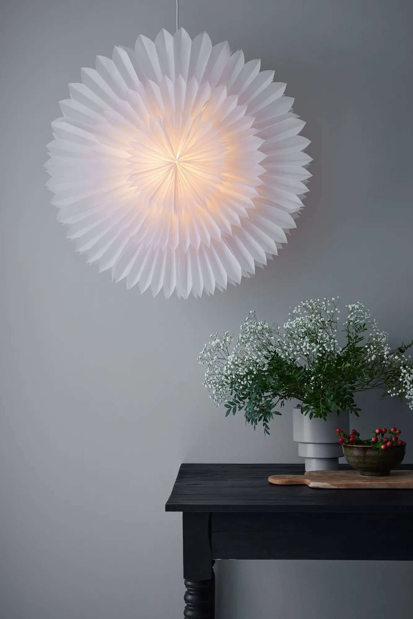 Díky nadčasovému vzhledu a snadné instalaci je Solina skvělou volbou nejen pro adventní čas, ale i pro celoroční dekorativní osvětlení v interiérech, které oceníte především při slavnostních příležitostech. Doporučujeme použít teplou LED žárovku, která podtrhne jemnost papírových struktur a navodí útulnou atmosféru.