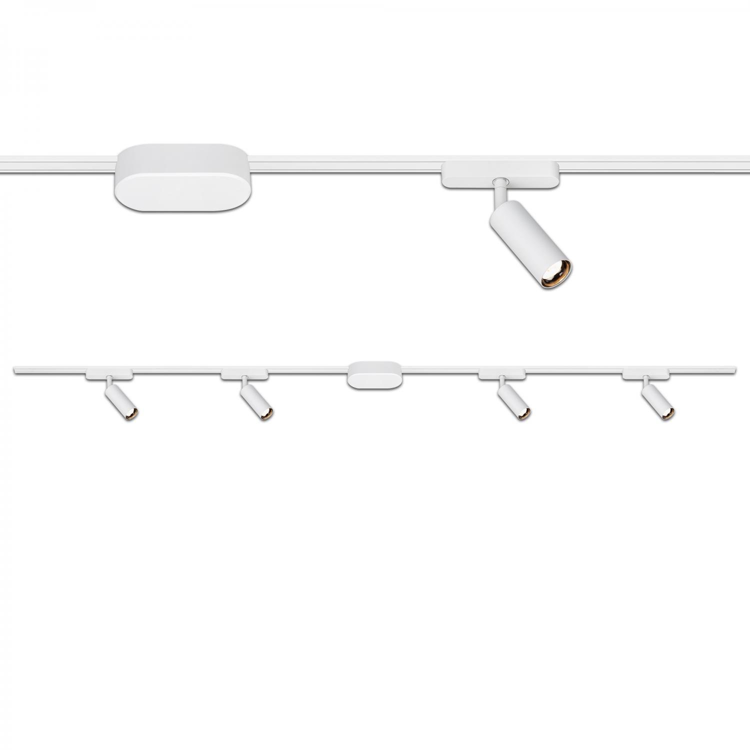 Startovací sada lištového systému BRILO Luxtrail, nízké napětí, bílá – 2x 48V lišta & 4 LED spoty s trafem (200 cm)