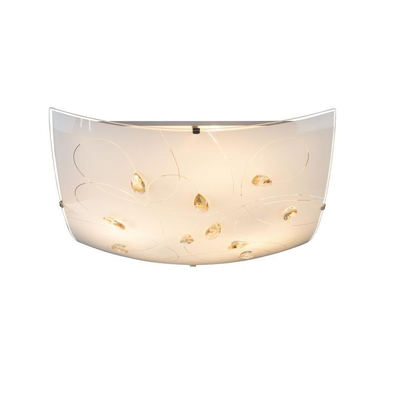 Moderní, ale zároveň klasická stropní lampa s názvem Taveuni (40x40 cm) nabízí nadčasový design. Kombinace jemně satinovaného skla a křišťálů v barvě s jantarovým nádechem přináší jedinečné světlo. Tři vestavěné objímky E27 Vám dávají možnost vybrat si žárovku (maximálně 60 W) a tak si můžete sami můžete nastavit intenzitu a barvu světla. Měla by být použita svíčková žárovka.