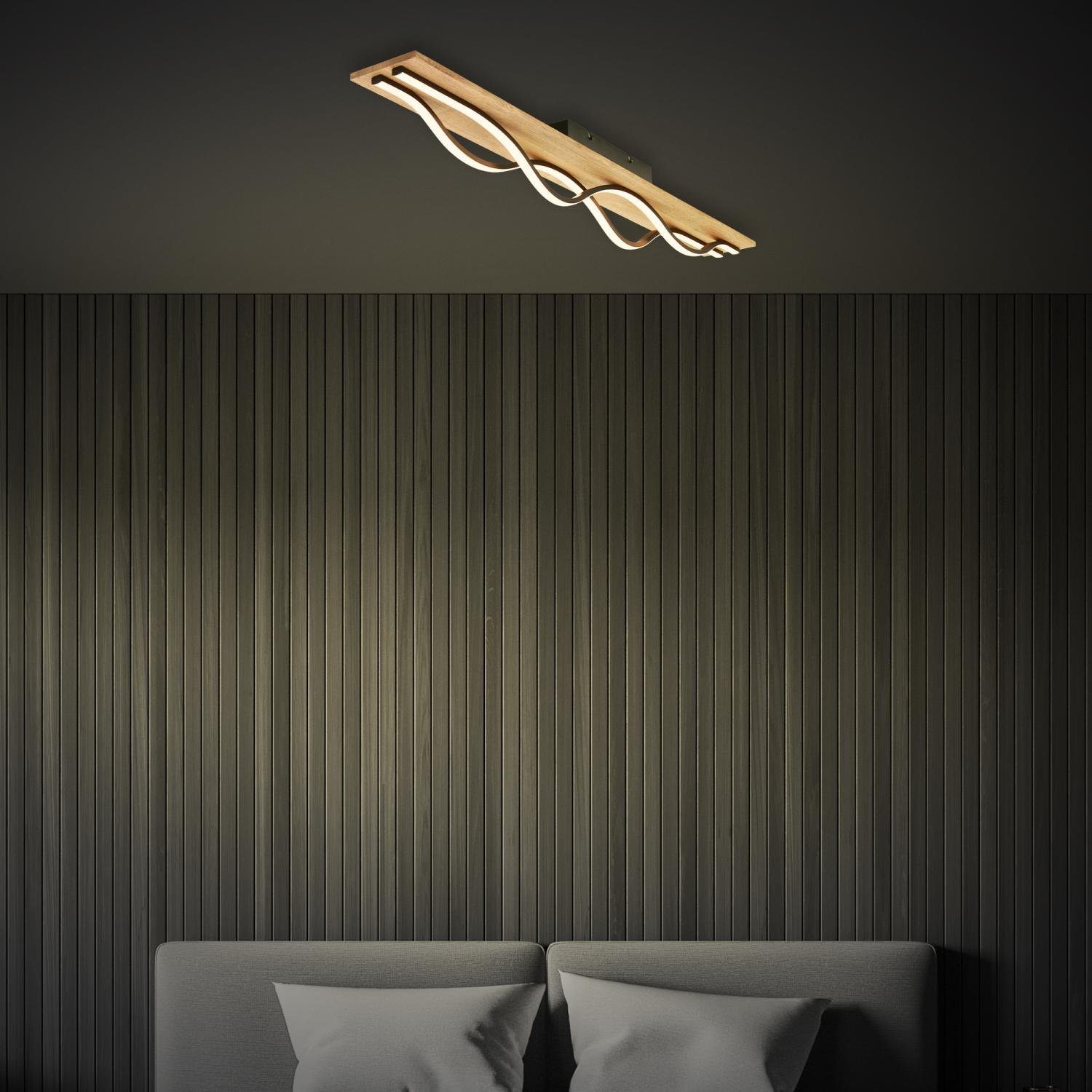 Vinka LED stropní svítidlo – vlna, dekor dřeva, teple bílé světlo, 98 cm