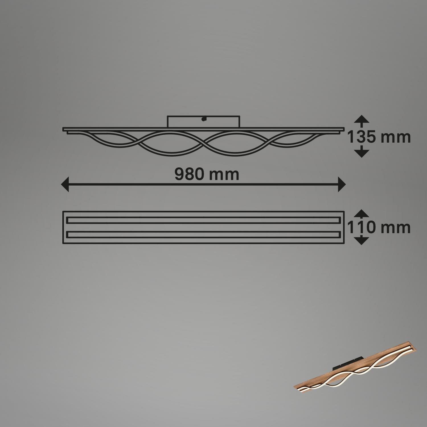 Vinka LED stropní svítidlo, tvar vlny, dekor dřeva, teple bílé světlo, dřevo, 98cm - BRILONER