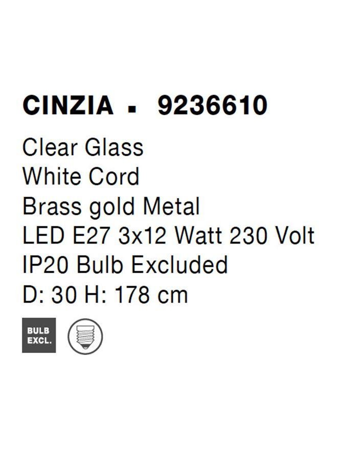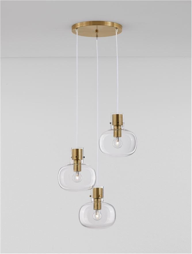 Závěsné svítidlo CINZIA čiré sklo bílý kabel mosazný zlatý kov E27 3x12W 230V IP20 bez žárovky - NOVA LUCE