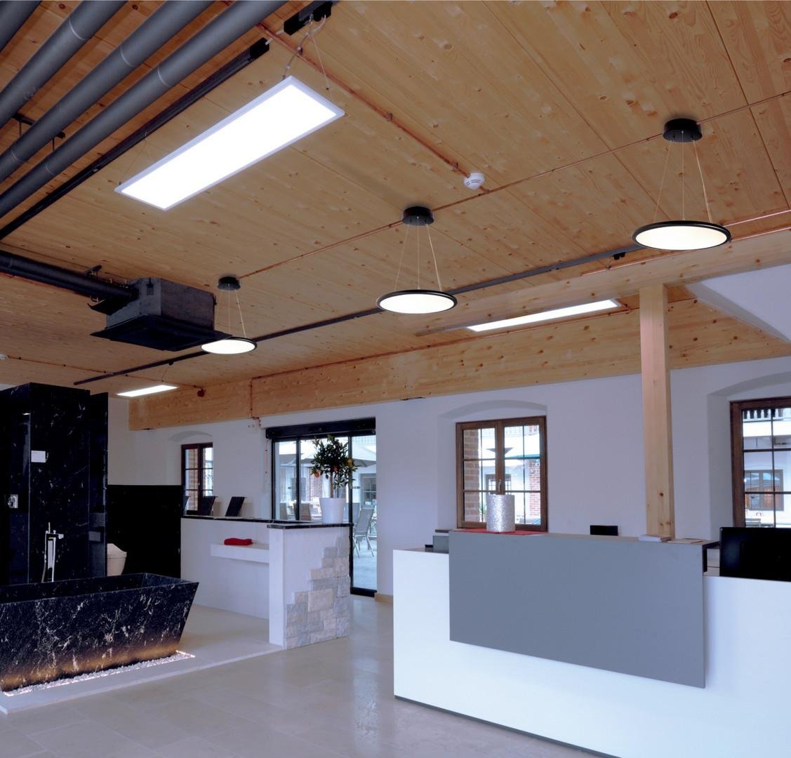 Co se týká osvětlení komerčních prostor, sem patří svítidla průmyslová, která jsou přizpůsobena tvarem i použitými materiály mnohdy složitějším podmínkám a náročnějšímu používání. Do výrobních, skladových i prodejních prostor firma DEKO-LIGHT nabízí závěsná i stropní svítidla, svítidla do rastrů, LED panely, podhledová svítidla, bodová svítidla se směrovým osvětlením nebo spotová svítidla a veškeré příslušenství (spojky, napájení, koncovky).